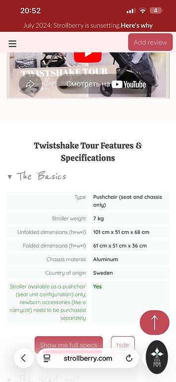 Stroller with smooth adjustment of the backrest, to the fully horizontal position. The stroller is in good condition, the problem is that it can not be folded for transportation and in the place for knives the material has faded in the sun. I will give the stroller for Fazer chocolate with nuts. I am in Riga