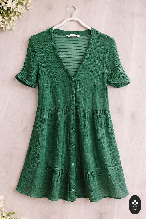Petrol-colored Calvin Klein dress.