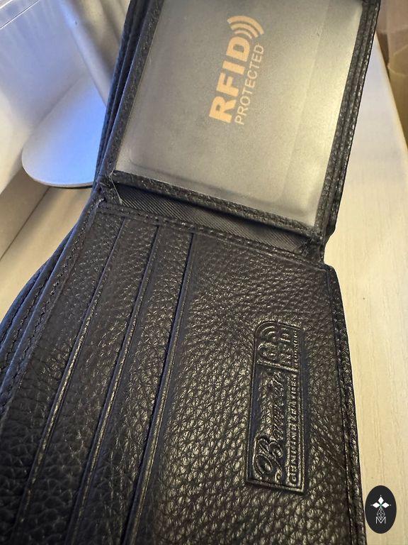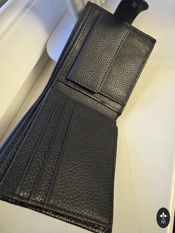 Large leather wallet with many compartments.