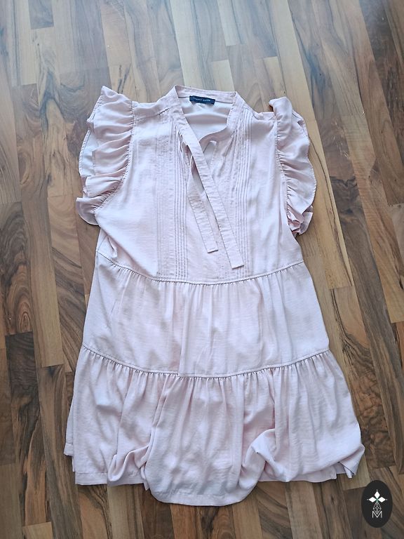 Skaita rozā kleita ar ziedu motīvu. Garums 87cm , krūšu apkārtmērs 55*2