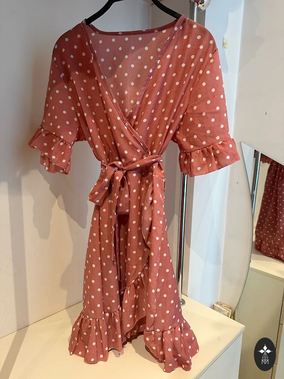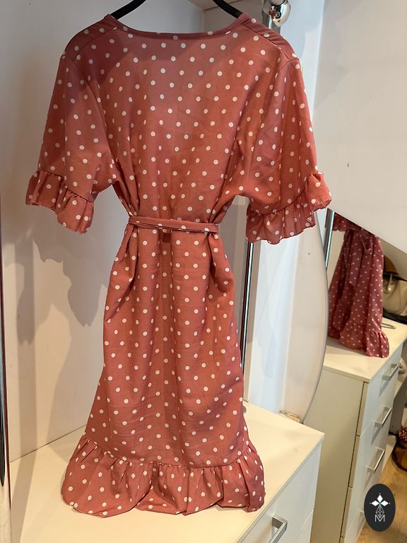 Uus kleit, suurus L, laius kaenla all venitamata 47cm, vöökohas 41cm, pikkus 128cm.