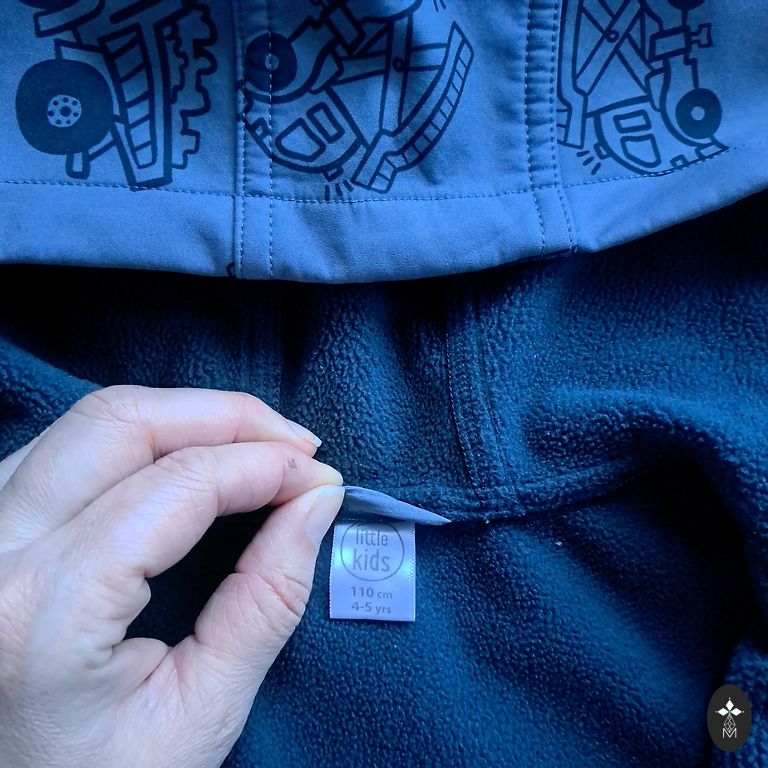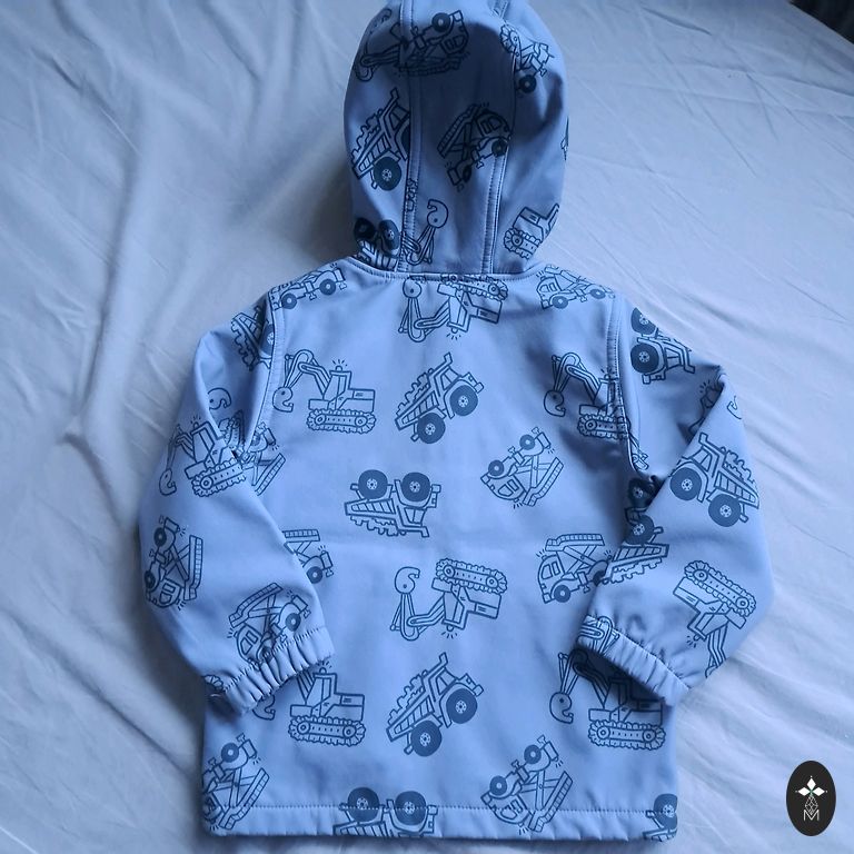 Little worn softshell Dino jacket. Size 80, but definitely +6cm. Extended back. Not washed, but I do not see defects and stains.