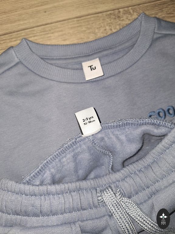 Ilgiausias kelnių ilgis – 61 cm. Marškinėliai su mažo šuns atvaizdu. Ilgis nuo peties – 34 cm, rankovės ilgis – 24,5 cm.