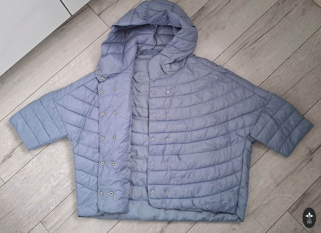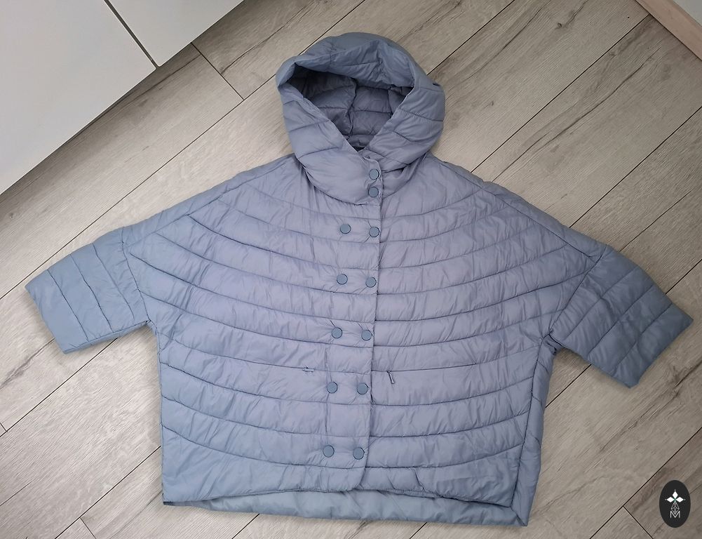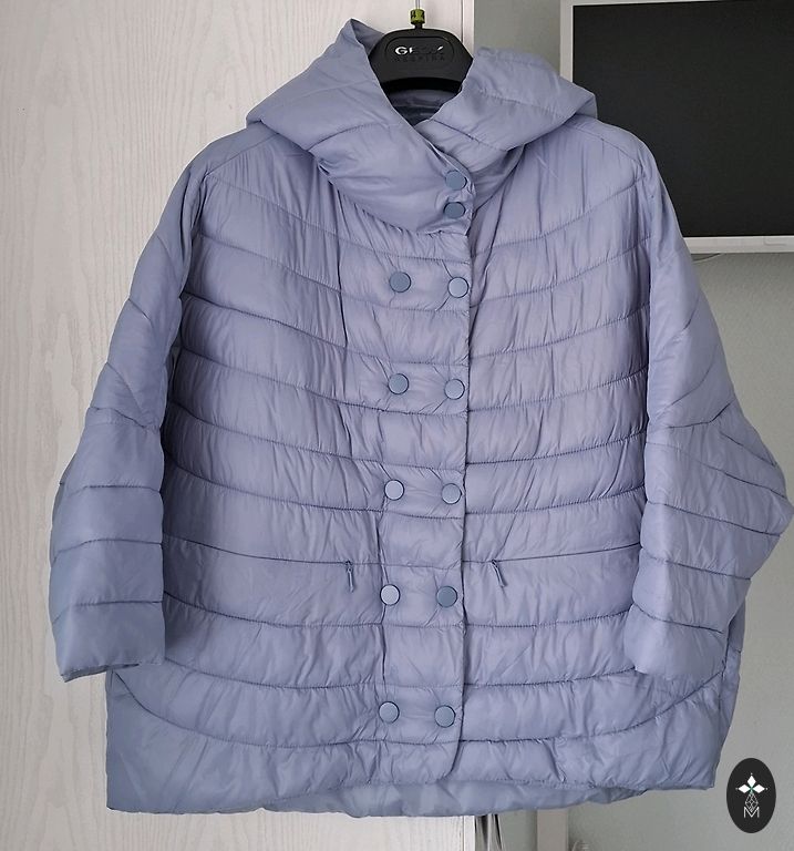 Удлиненная курточка хорошего качества в отличном состоянии ( носилась один сезон и стала маловата) на 42-44 евр.размер. Капюшон отстегивается, есть ремень. Приталена, хорошо сидит на фигуре.Цвет зеленоват-сероватый.