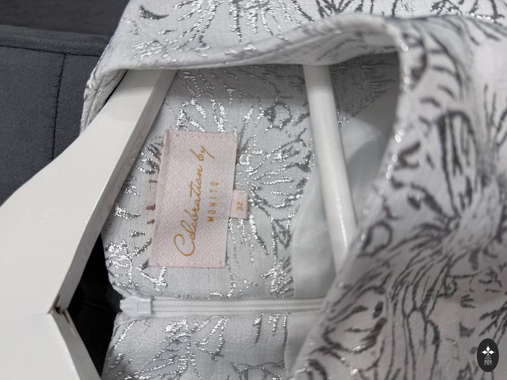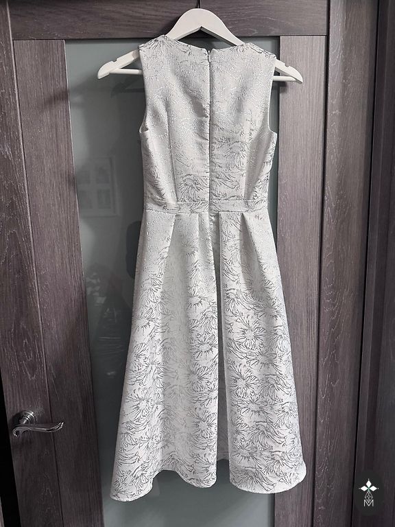 The dress has a zipper at the back