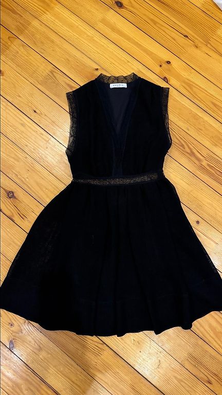 Ļoti skaista kleitiņa, diemžēl vairs neder. Bežīgas oderes garums 76, kleitas garums 85, krūšu apkārtmērs 86, gurni 96cm.