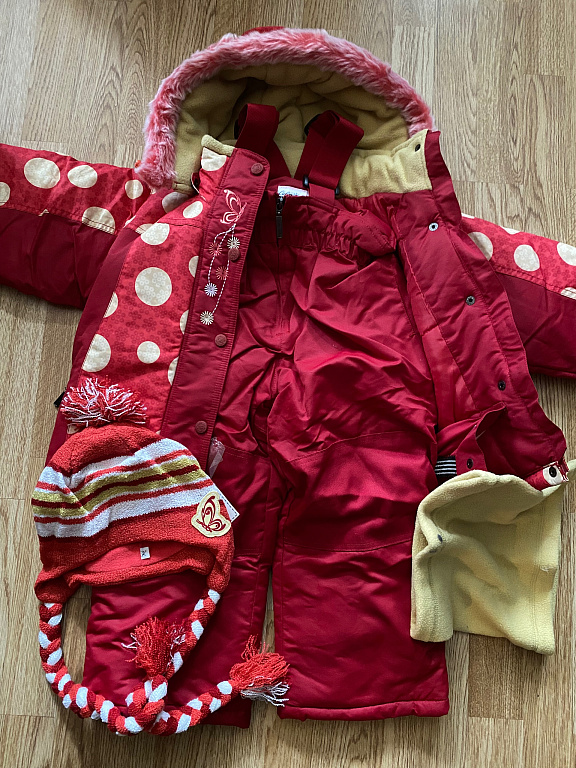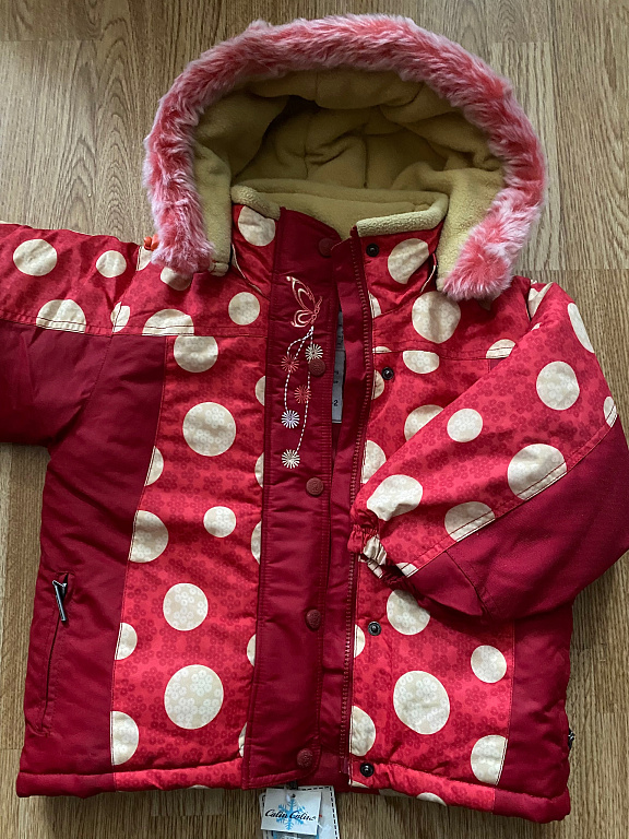 Parduodu labai šiltą žieminį kombinezoną mergaitėms puikios būklės. Dydis 98. Kelnių vidinės siūlės ilgis 38 cm, striukės ilgis 45 cm, rankovių ilgis 37-38 cm.