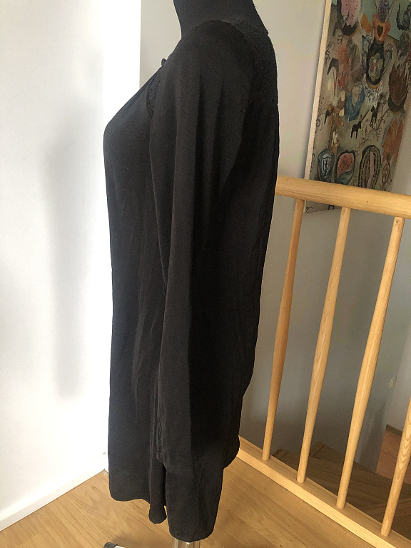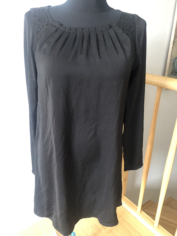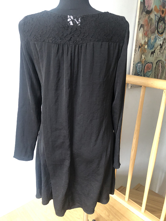 Skaista Ted kleitiņa, būs vai nu ļoti īsa kleitiņa vai tunika (garums 85 cm). stiepjas. skaists ziedu raksts, mugurpuse melna. lietojuma pazīmju nav.