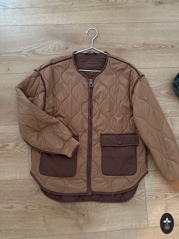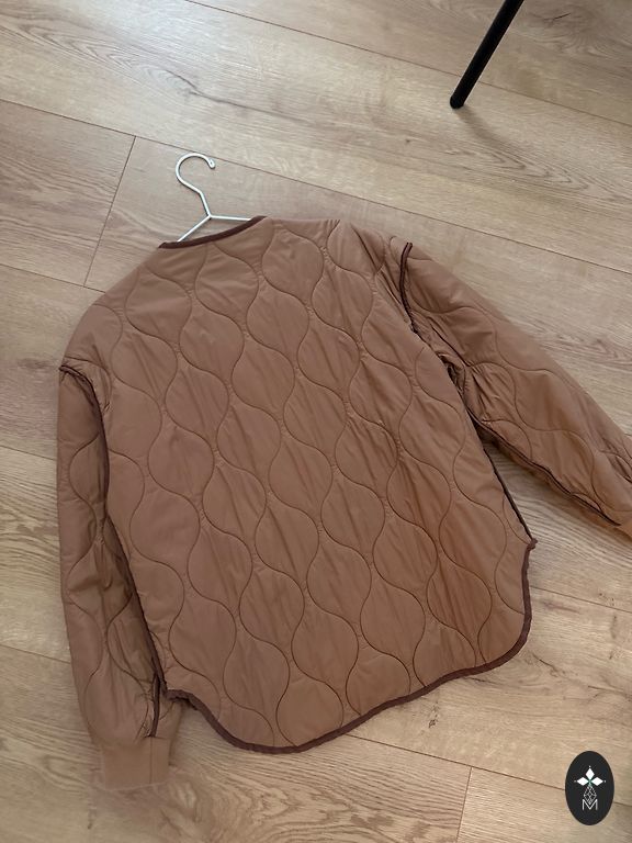 Куртка ношена один сезон, пух (искусственный) не использовался вообще. Размер 38. Подходит как для S, так и для M размера. Длина 83 см. Расстояние между подмышками 45 см. Наполнитель - полиэстер.