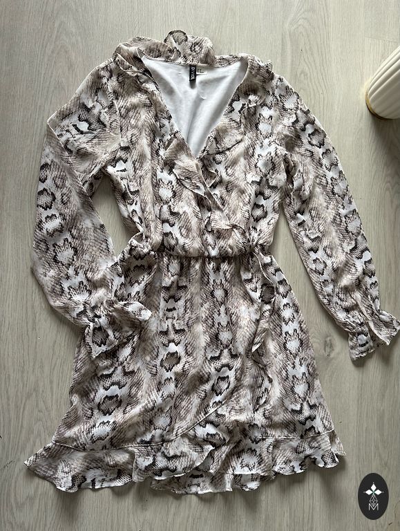 Uz auguma lieliski izskatās, etvijkleita ar oderi (EU 40) ir akurāti valkāta un ir labā stāvoklī : garums - 100 cm, krūtis - 46 x 2 cm, viduklis - 40 x 2 cm, gurni - 48 x 2 cm.