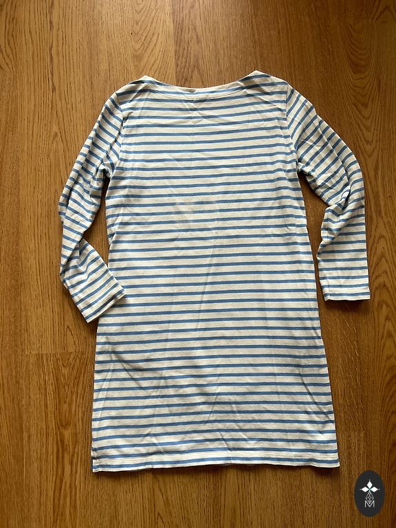 Pārdodu jaunu kokvilnas kleitu - starp padusēm 50, garums 89, piedurknes garums 38.