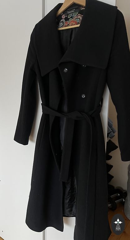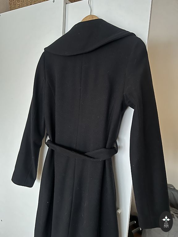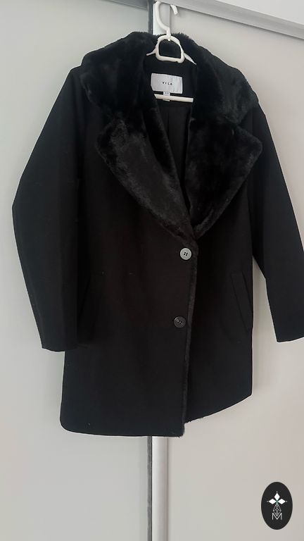 Selling a high-quality, well-made, and well-finished insulated black autumn coat with speckles, worn a few times. It is labeled as size 44, but is slightly larger. The closure is with a double zipper and buttons, pockets with zippers. Measurements - from one armpit to the other 60 x2 cm, waist 57x2 cm, hips 64x2 cm, length 95 cm, shoulders 49 cm, sleeve length from shoulder 62 cm.