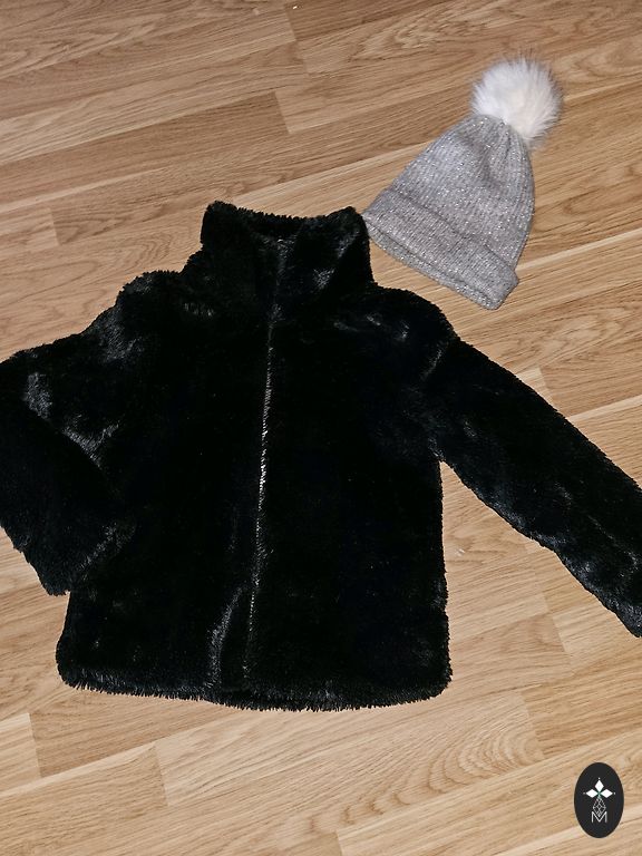 Moncler coat / original, size 128, 8 years old, composition 75% wool, 5% cashmere, natural rabbit fur collar (detachable).
