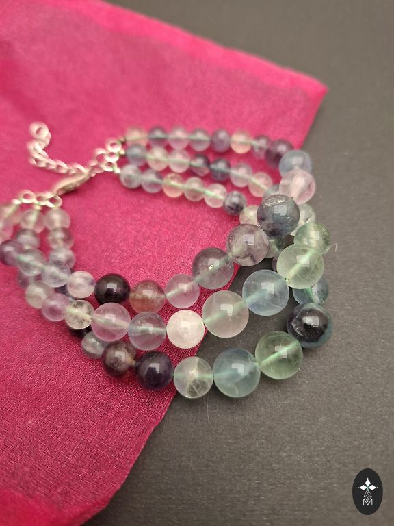Naujas, rankų darbo apyrankė vienintelis egzempliorius. Užsegimas užsukamas. Galima lengvai perkelti, pritaikant prie rankos dydžio. Šiuo metu sureguliuota rankos apimčiai 19-19,5 cm. Laisvas galas 6,5 cm yra tiek grožiui, tiek dydžio pritaikymui. Gyvenime atrodo ryškesnė, spalva ryškesnė. Ryškiai pavasariniai atspalviai. Akmenys - fluoritas, peridotas, natūralios baltos gėlavandenės perlės. Pirkėjai bus įteikta organzos maišelyje, bet pasirinktinai galiu pasiūlyti staigmenos dėžutę-vardelį, siuvinėtą maišelį ar atlaso futrą.