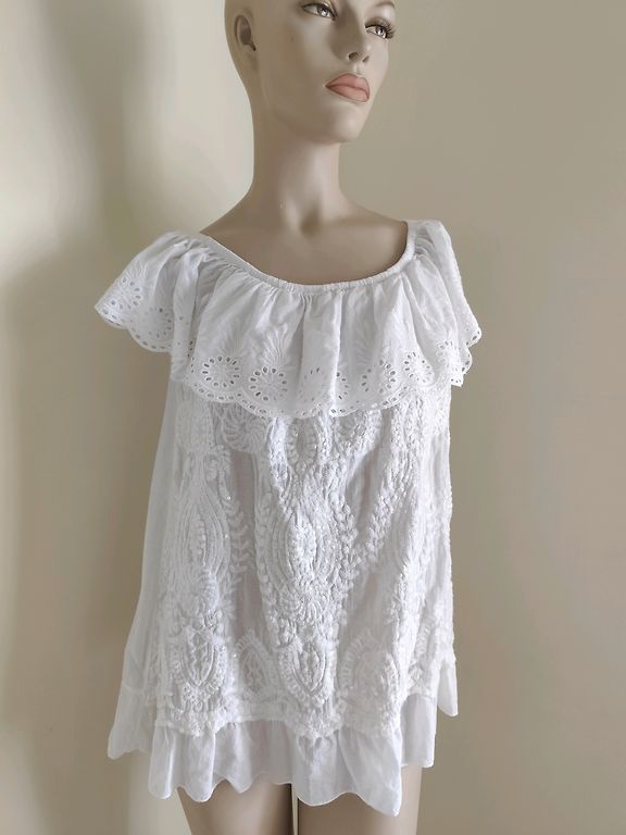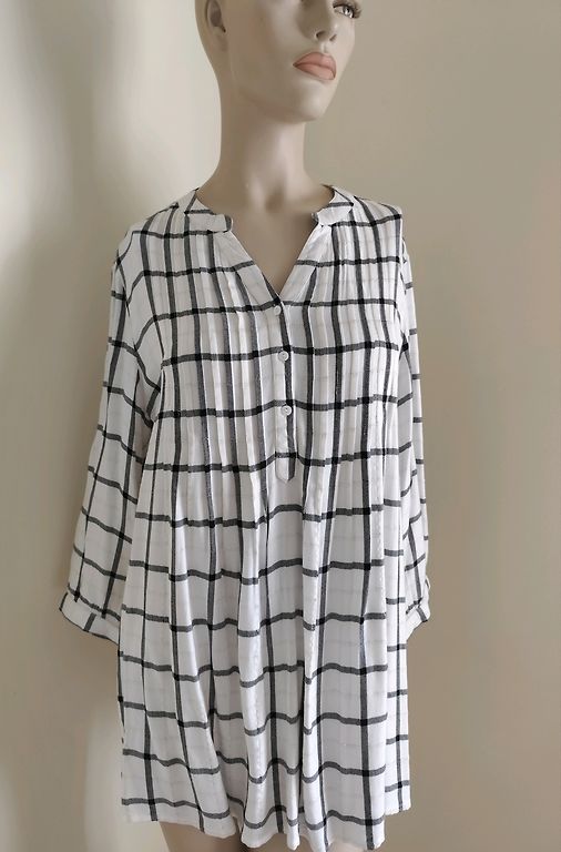 Šikšnosparnių tipo modelis, nugaroje surišama juosta, po pažastimis ir klubais - iki 120 cm, ilgis - 63 cm, siunčiu.