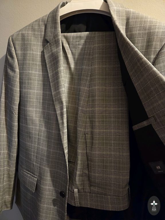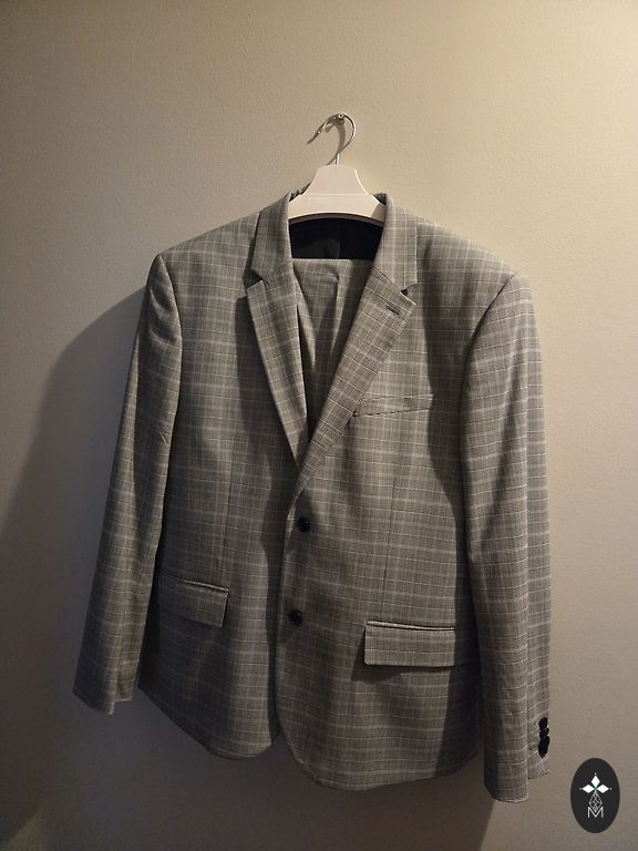 Костюм Montego. Куплен на M, надет несколько раз. Ткань приятная, не жесткая.