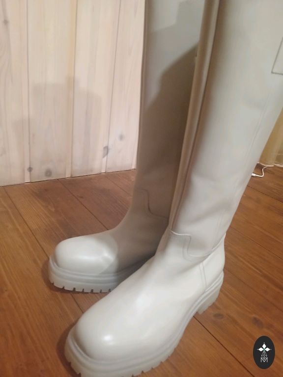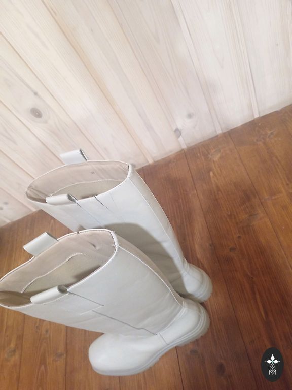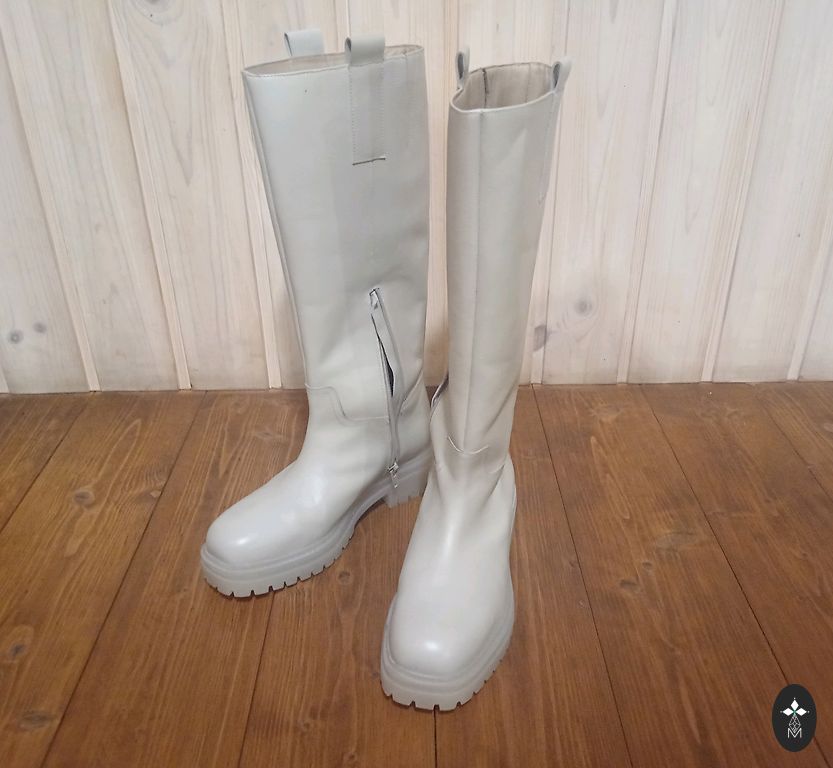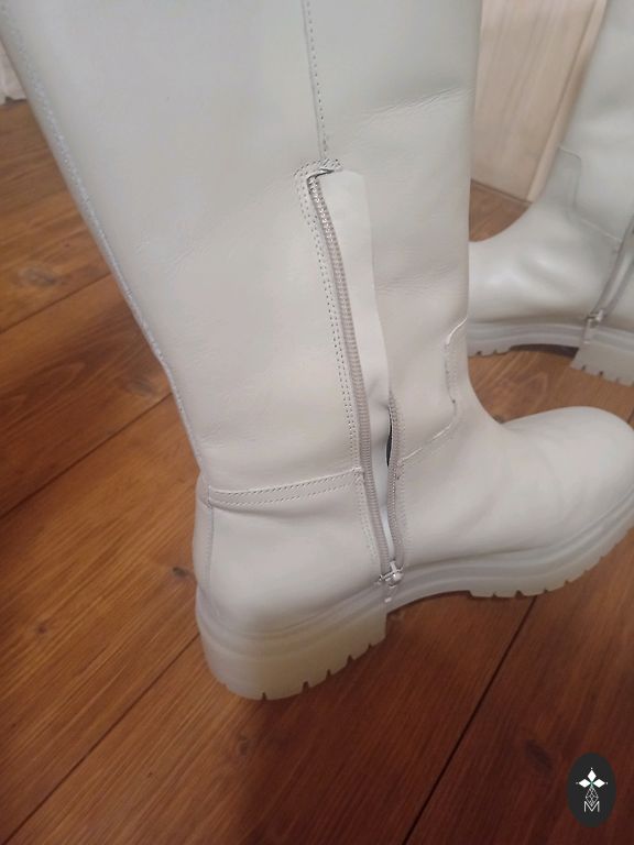 Leather boots, modern and stylish. Inside is suede fabric. Very comfortable. Bought this year, worn once. You can see they are new.