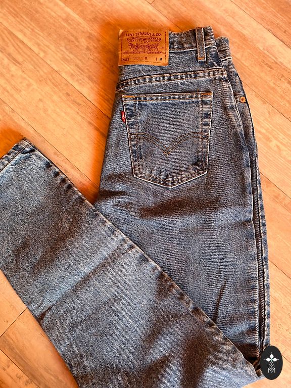 Джинсы Levi's 721 с высокой посадкой и узким кроем до щиколотки, размер W25. У брюк есть классные акценты - застежка на пуговицы, дополнительный шов спереди, который визуально удлиняет ноги, небольшие разрезы у щиколоток. Несколько раз надевала, но они мне немного тесноваты.