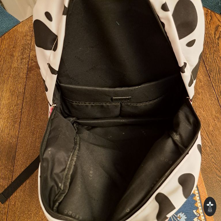 Odinė rankinė, dydis 28×19. Du skyriai, vidinė ir išorinė kišenė. Diržo ilgis 33×2 cm, nereguliuojamas. Rankinė be akivaizdžių vizualių defektų (šiek tiek nutrinta furnitūra - žr. nuotrauką).