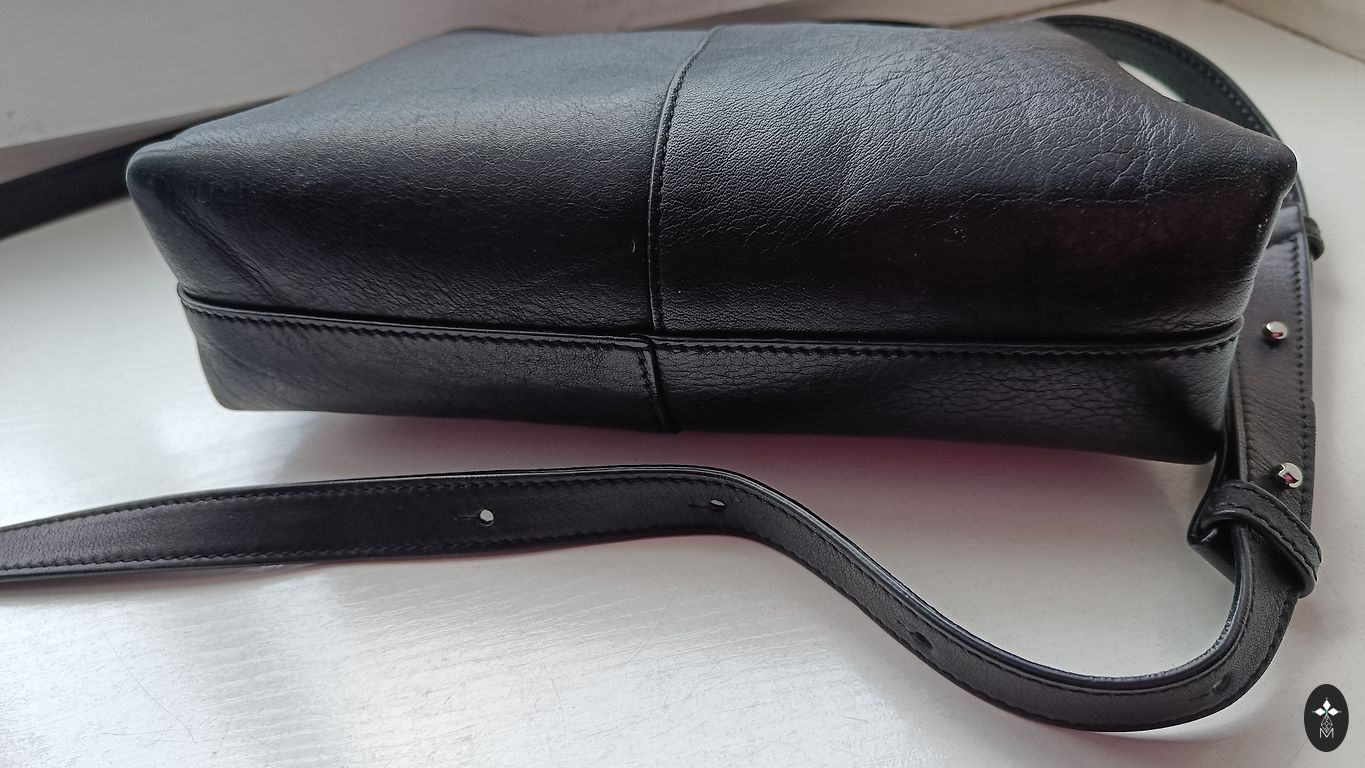 Patogi Cesare Paciotti odinė rankinė, 17 cm aukščio, 23 cm pločio. Dvi dalys, užsegama vienu užsegimu. Naudota 3 kartus.