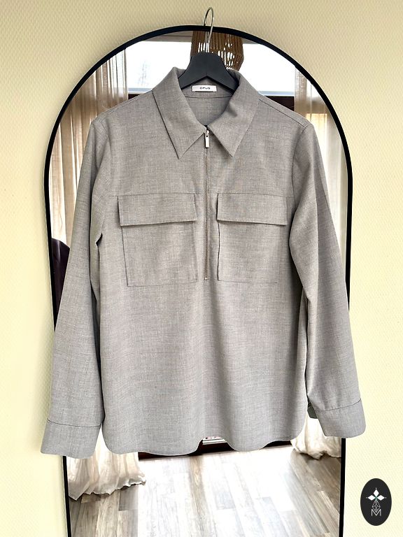 Koši dzeltena M izm. satīna blūze, šūta asimetriskā stilā. Piedurkņu galos mazi šķēlumiņi, arī garākajā malā šķēlums uz kreisā sāna.