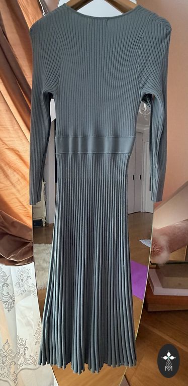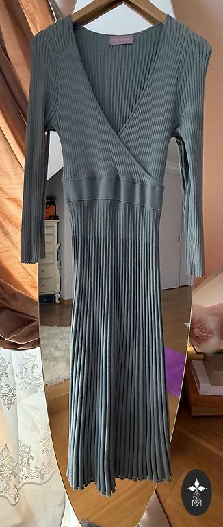 Kleita uz auguma, staipiga materiāla. Derēs no XS-S izmēram. Vilkta 3x. Garums 102cm