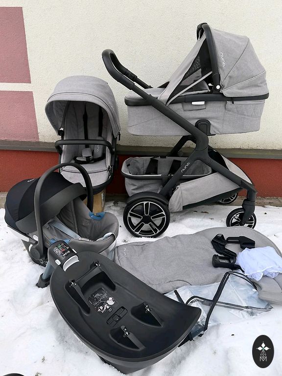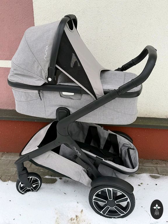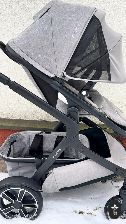 Very well-cushioned strollers, ideal for snow, sand, and forest. All-terrain, two parts, can be placed on both sides. On the downside - scratched frame.