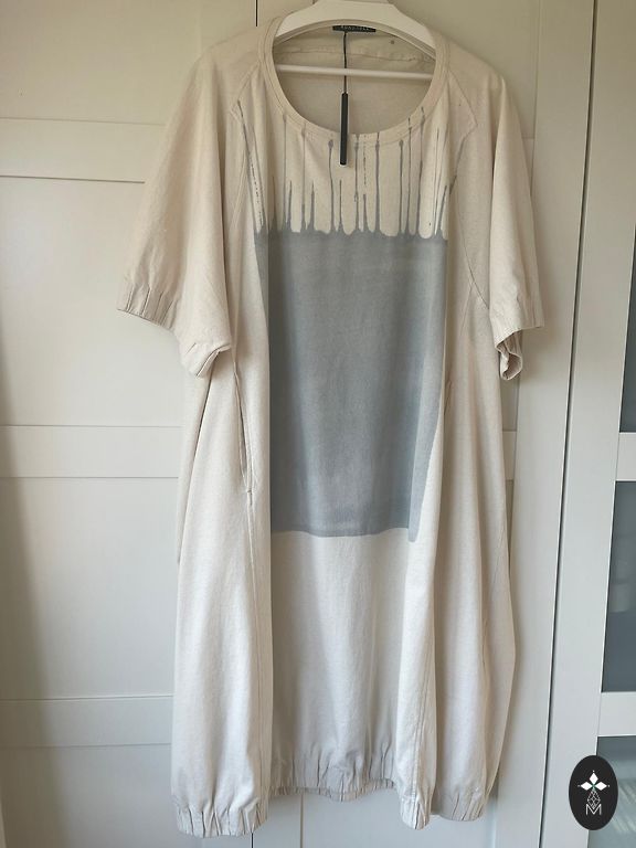 Новое платье А-силуэта, подходит для размеров S-2Xl. Выглядит фантастически, рисунок на спине. Грудь 56×2, бедра 130 см, длина спереди 91, сзади 102. 95% хлопок, 5% эластан.