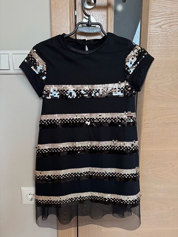 Туника с капюшоном,в отличном состоянии,капюшон и карман спереди с блёстками,вся длина 78 см,одета один раз.