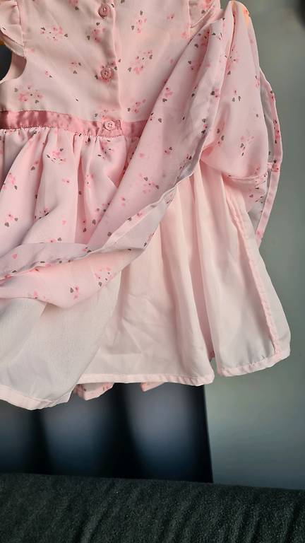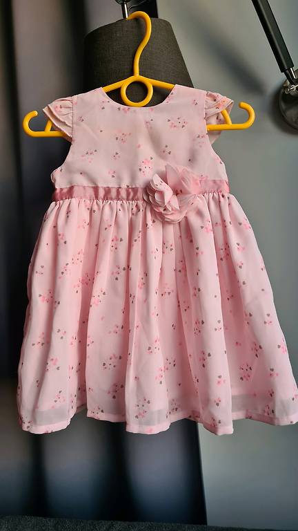Kleit, kerge, on vooder. Suurus 110. 5-aastastele. Pikkus 63cm, vööümbermõõt 29cm.