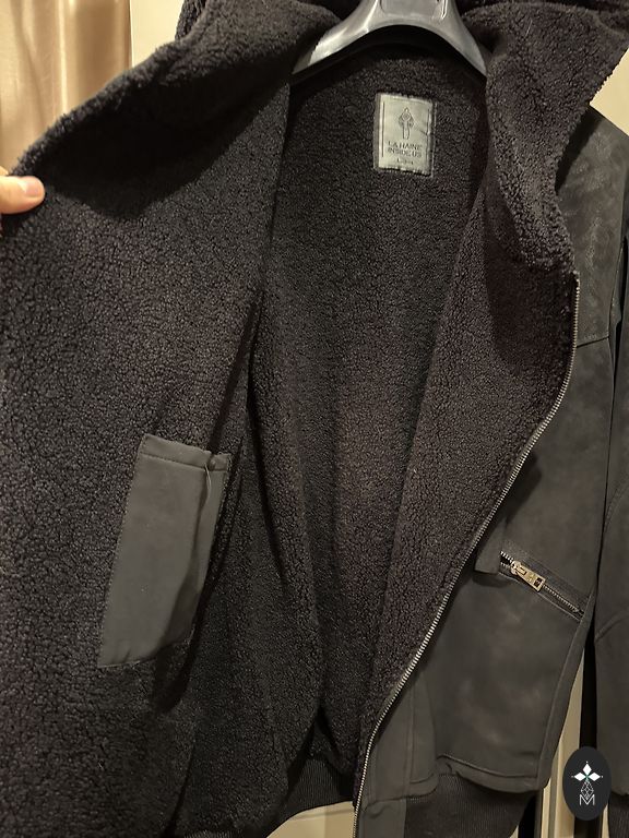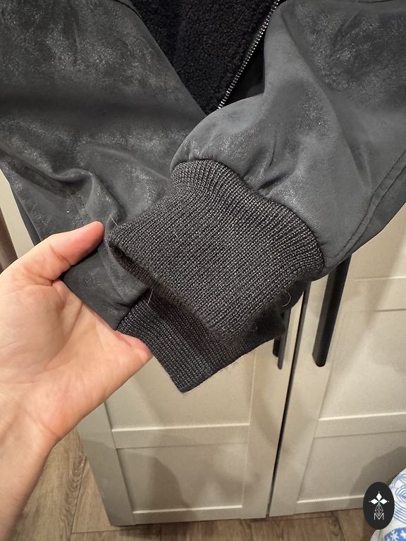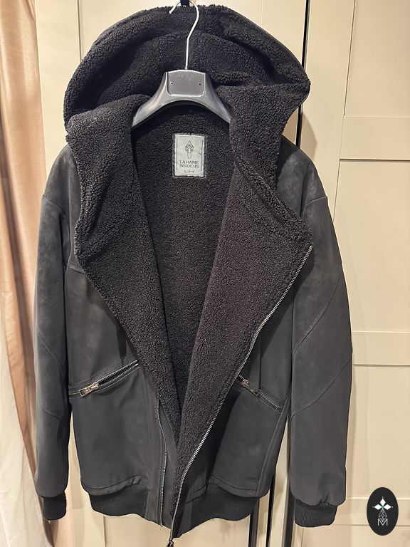 Natūrali oda, viduje pašiltinta natūraliu kailiu, apykaklė - meškėnas. Tinka M - L dydžiui. Siūta pagal užsakymą. Mažai nešiota. Yra defektas, matomas paskutinėje nuotraukoje.