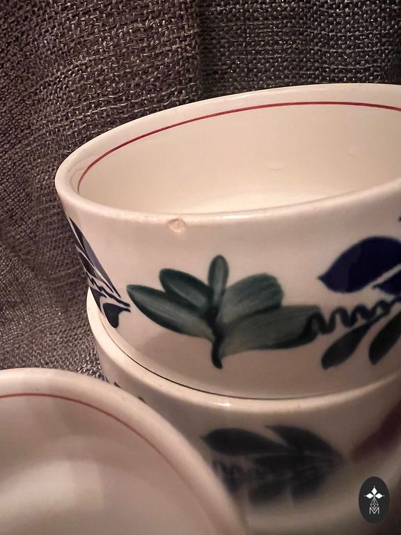 Nepilna kafijas servīze KPM. Kannai defekti, plaisa un robiņš augšā.